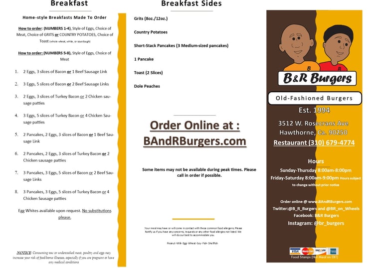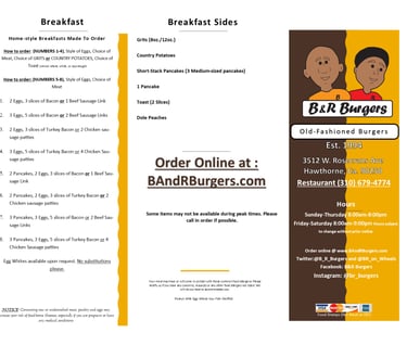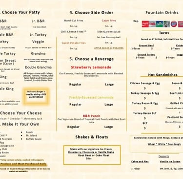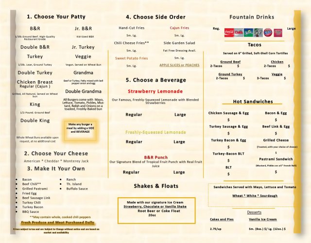 B&R Burgers is a family-owned restaurant that has been serving the community since 1994. We take pride in offering delicious old-fashioned burgers made with the finest ingredients. Our menu also includes a variety of breakfast options and homemade ice cream. Visit us and experience the warm and friendly atmosphere of our establishment.